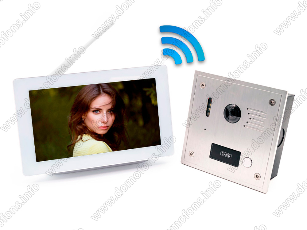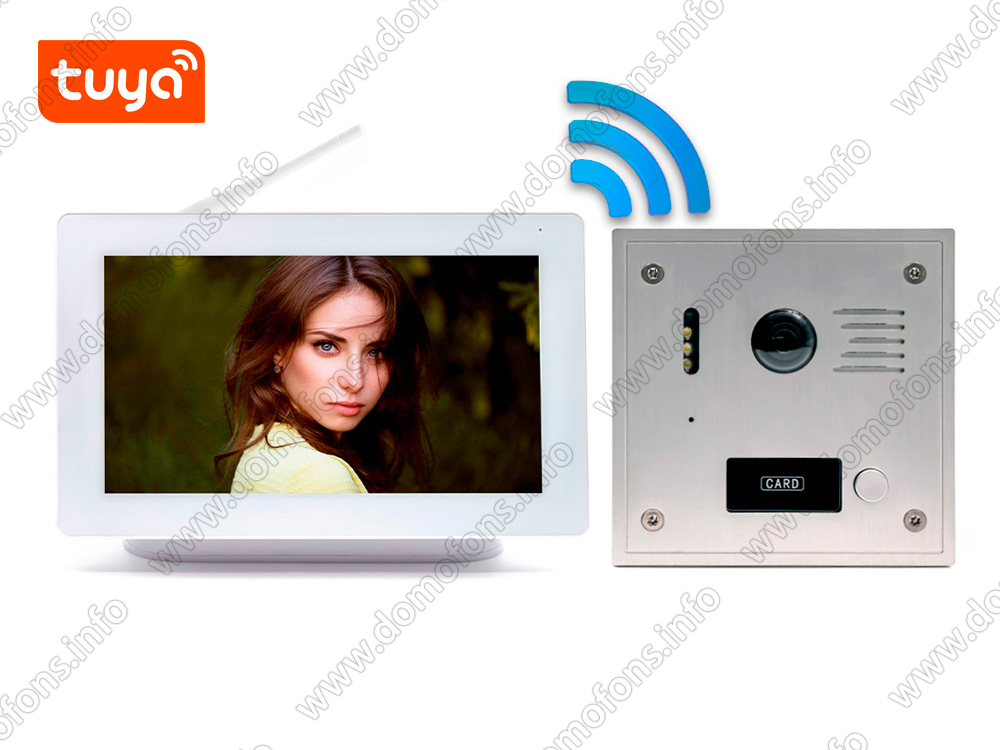 Беспроводной комплект Wi Fi домофона и вызывная панель «SkyNet-Tuya 800 (1+0)» Беспроводной видеодомофон и беспроводная антивандальная вызывная панель C-81223 с RFID-картой. Дальность до 300м.